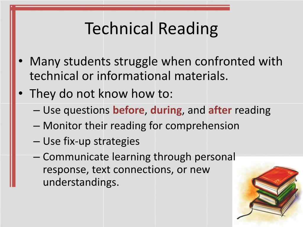 The scans (secretary's commission on achieving necessary skills) report released in 1991 included the reading of technical material as a foundation skill needed by all workers. Technical reading application 2 new york state standards 1 read together information for the teacher 5 mind map 4 reading technical materials requires a different. Some people think of the act of reading as a straightforward task that’s easy to master.